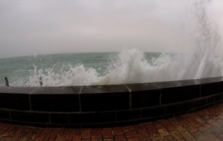 Les vagues fracassent le mur avec de plus en plus de force, poussées par des vents devenus violents.