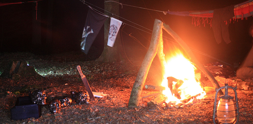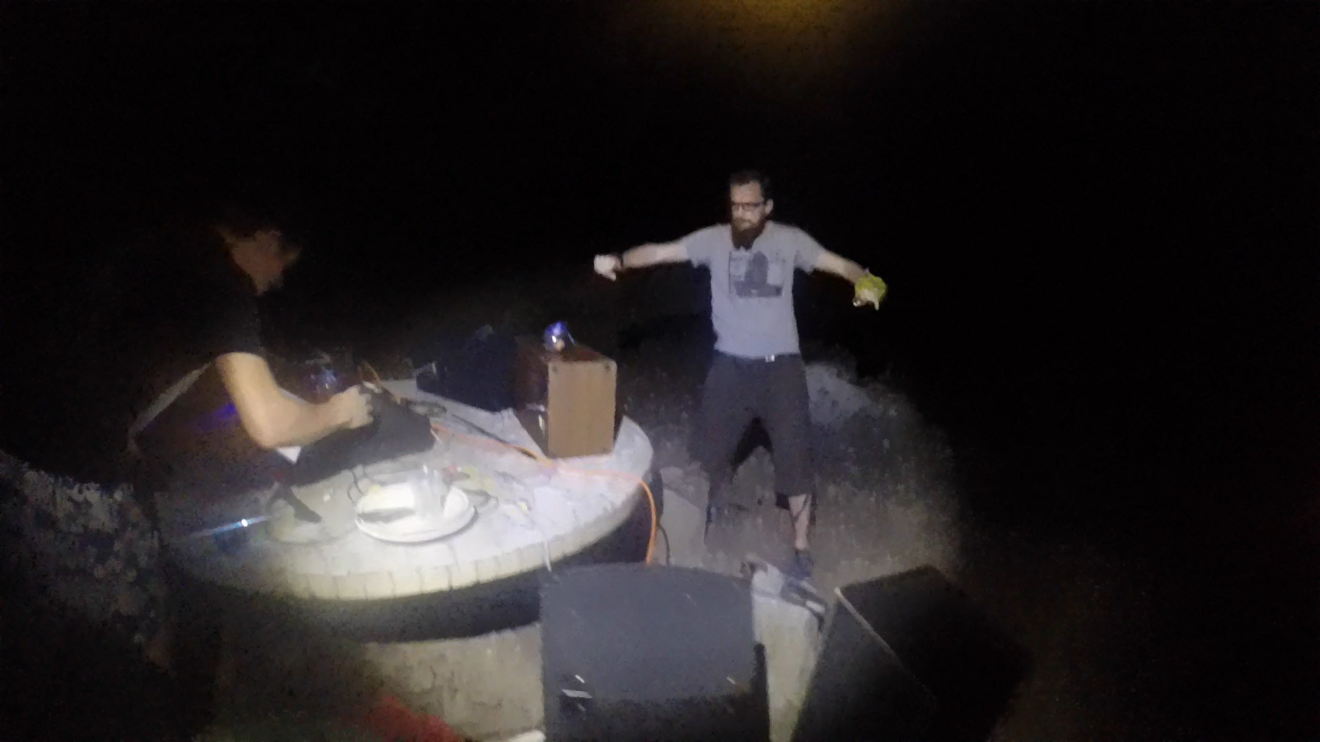 Nous avons trop bien repéré l’endroit il y a trois mois. A mi-chemin, un bruit tonitruant éclate entre les arbres : de la techno !