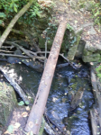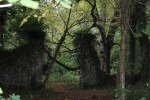 Les débuts des ruines sont là, en suivant le sentier, on ne peut pas les manquer. Plus loin ce qu’il reste du prieuré se dresse entre les arbres. On va se la jouer à la Indiana Jones ; pour entrer dedans, il faut passer par un petit trou. J’envoie une photo au capitaine, pour lui montrer que je suis sur ses traces. Il me répond d’aller visiter la cave.